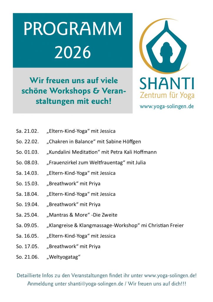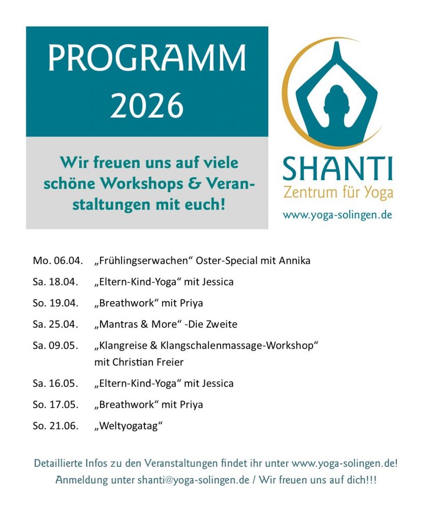 wir freuen uns, dass du den Weg auf unsere Website und damit zum Yoga in Solingen gefunden hast. Yoga ist nicht nur Bewegung, sondern auch Rückzugsort und innerer Frieden. Om SHANTI! Gerne begleiten wir dich auf deinem Yoga-Weg.