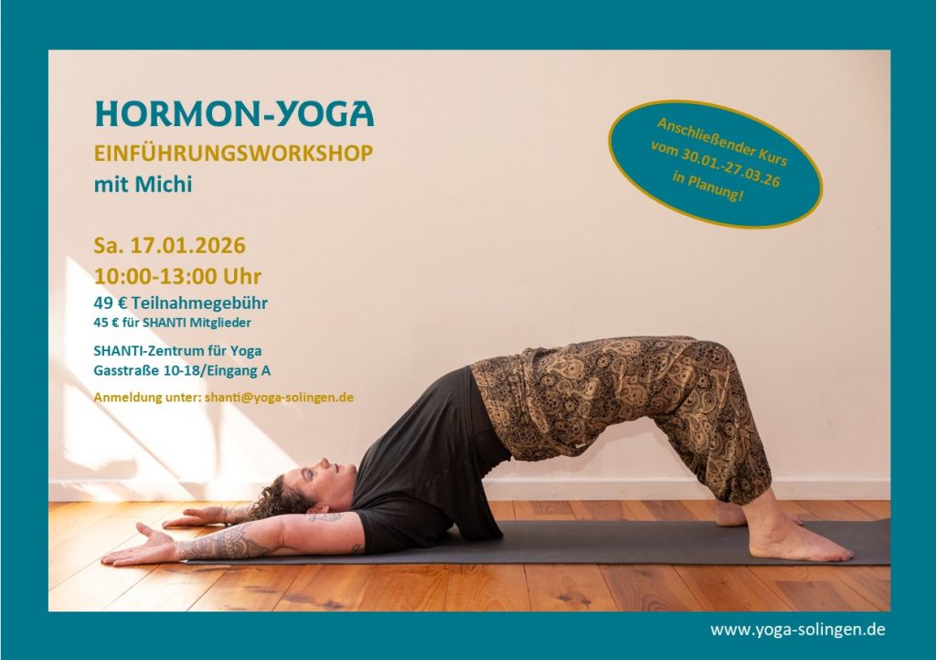 Im Anschluss an den Workshop vom 17.01.2026 bieten wir erstmals einen „geschlossenen“ Hormon Yoga Kurs im SHANTI an. Teilnehmen können alle Yoginis, die den Einführungsworkshop bei mir oder bei Caro gemacht haben oder am 17.01.26 noch machen werden.